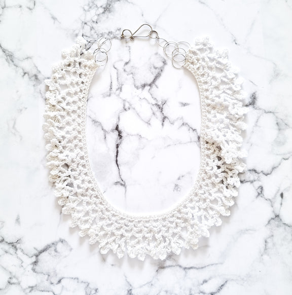 The Haute Couture Handcrafted Collar Necklaces are proudly handcrafted in New Zealand by a skilled and experienced trained jeweller. The finest quality silk blended yarns have been selected as well as antique buttons to complete these unique pieces. Metal embellishments and findings are sterling silver. We hope you enjoy wearing your uniquely handcrafted Haute Couture Collar Necklace.