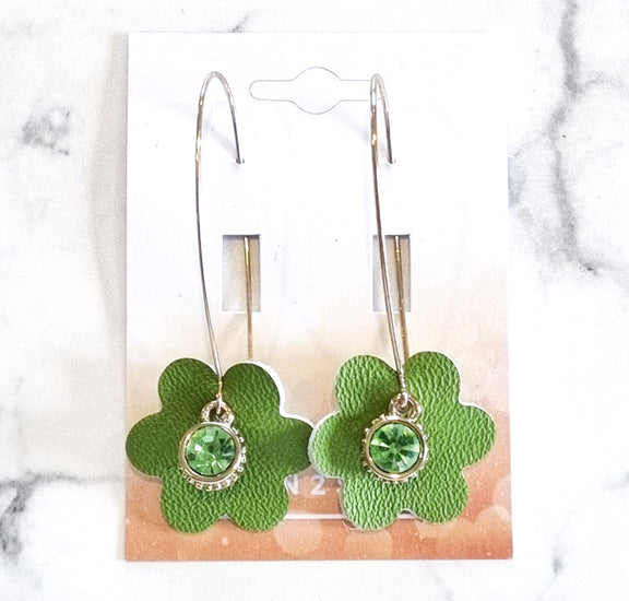 Nouvelle Zealande Chic Earrings - Crystal Flowers Green Silver