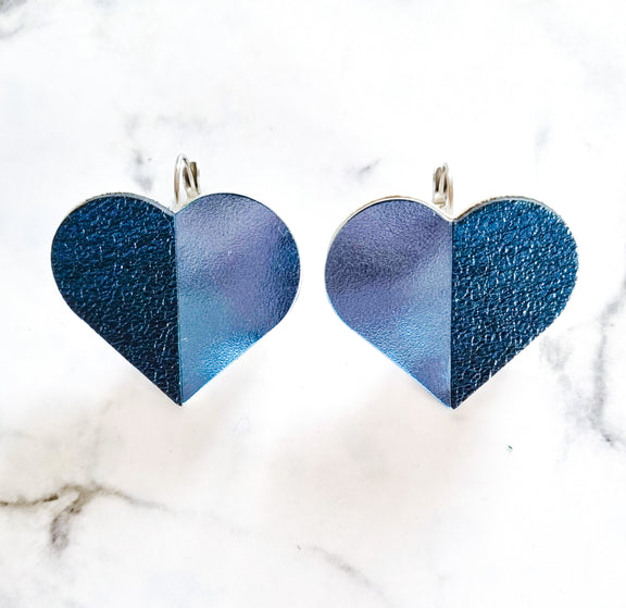 Nouvelle Zealande Chic Earrings - Large Heart Navy Shine