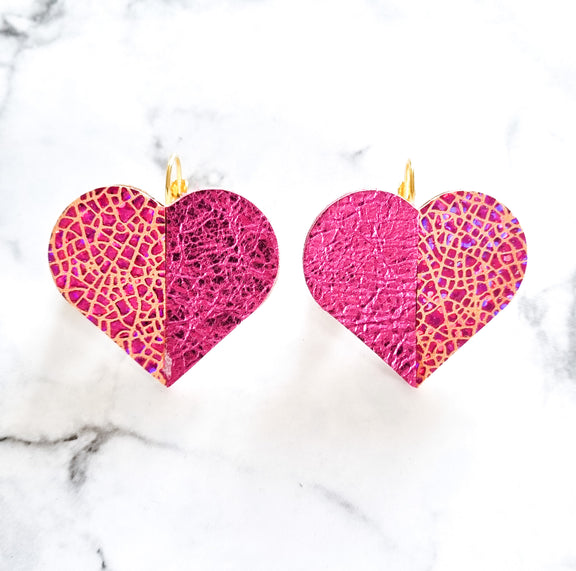 Nouvelle Zealande Chic Earrings - Large Heart Hot Pink Shimmer