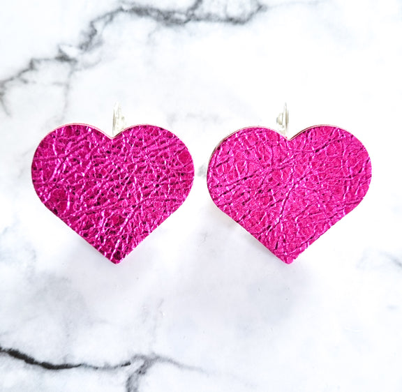 Nouvelle Zealande Chic Earrings - Large Heart Hot Pink