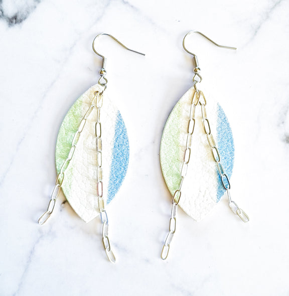 'Nouvelle Zelande Chic Earrings' are made from quality nickel free hypoallergenic (non-allergenic) metals of electroplated stainless steel. The leather pieces used within the jewellery are remnants sourced from Europe. The range of jewellery is proudly made in New Zealand (Nouvelle Zelande). The Oval Earrings are 8.5cm H x 2.7cm W. We hope you love wearing your 'Nouvelle Zelande Chic Earrings' from Born2shop jewellery as much as we enjoy making them for you.
