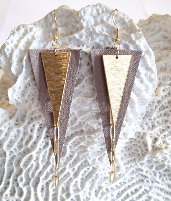 Born2shop brings the finest quality costume jewellery available to the market. Jewellery within the category 'Nouvelle Zelande Chic Earrings' is made from quality nickel free hypoallergenic (non-allergenic) metals of electroplated stainless steel. The leather pieces used within the jewellery are remnants sourced from European Fashion Houses. The range of jewellery is proudly made in New Zealand (Nouvelle Zelande). The Nouvelle Zelande Hanging Triangles Earrings are sized 10.0cm x 2.5cm with a post finding. We hope you love wearing your 'Nouvelle Zelande Chic Earrings' from Born2shop jewellery as much as we enjoy making them for you.