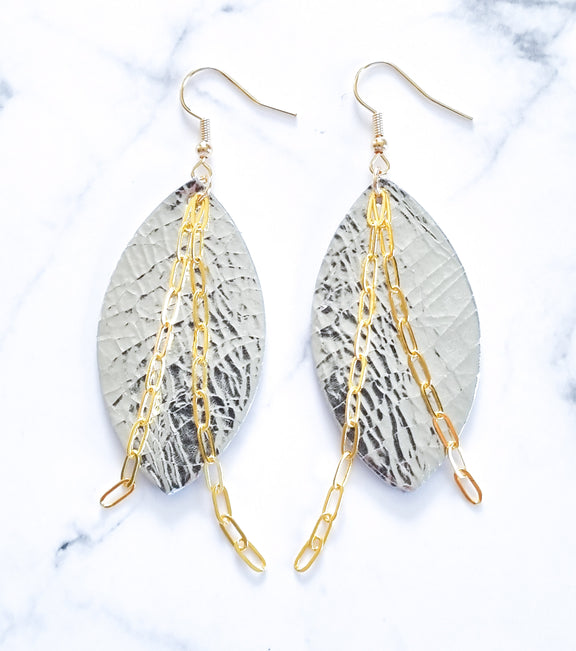 Nouvelle Zelande Chic Earrings - Oval Silver Metallic Gold